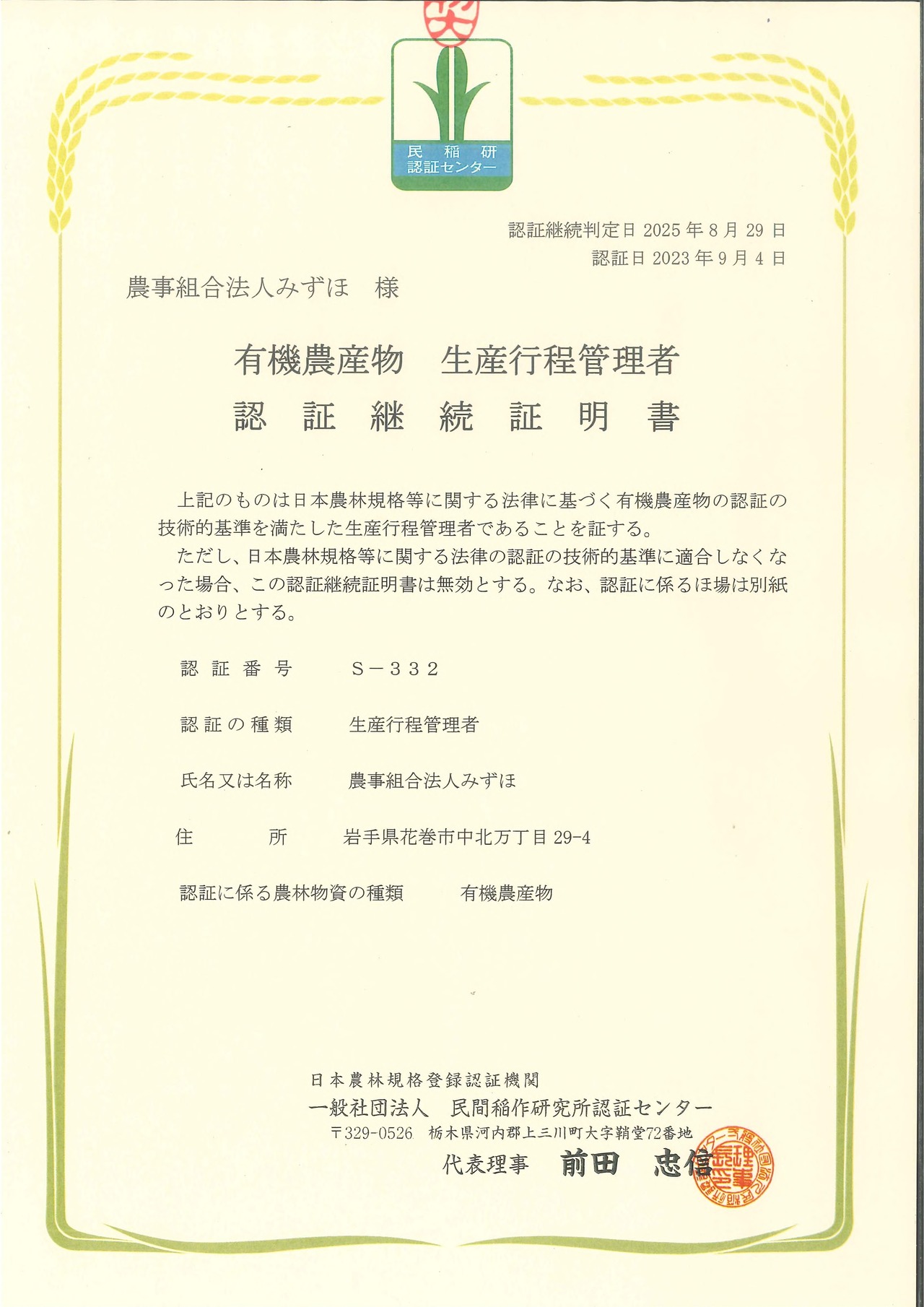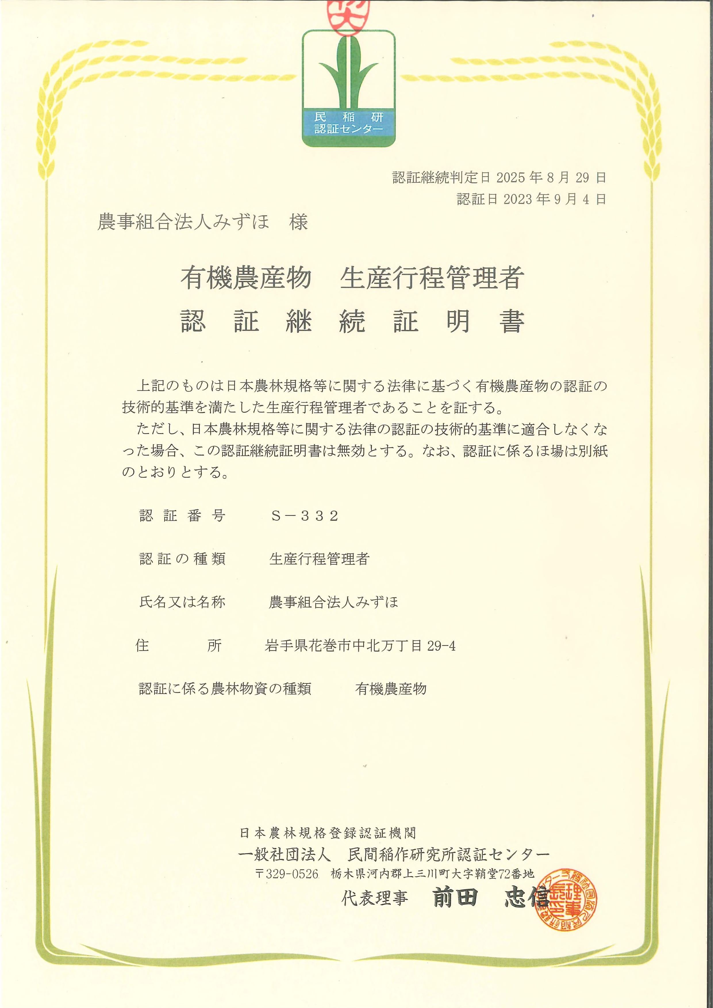 ※「有機JASみずほ米」:農事組合法人みずほで栽培された 4つのこだわりをクリアしたブランド米です。
